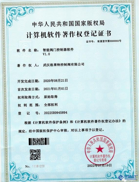 “軟著”登記證書的獲得,意味著格萊特控制閥越來越多的獨(dú)立知識(shí)產(chǎn)權(quán)得到了國家權(quán)威機(jī)構(gòu)的認(rèn)可和肯定。同時(shí)也標(biāo)志著公司在發(fā)展過程中又邁上了一個(gè)新臺(tái)階,并進(jìn)一步促進(jìn)了公司的技術(shù)創(chuàng)新,增強(qiáng)了公司的核心競爭力,增加了公司的無形資產(chǎn),完善了公司的知識(shí)產(chǎn)權(quán)保護(hù)體系。