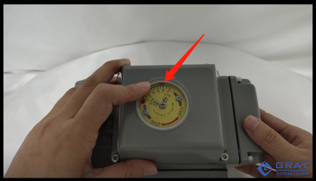 直到刻度盤(輸出軸)肉眼可見的行程變化(移動),記錄此時的信號值,記為I1