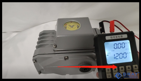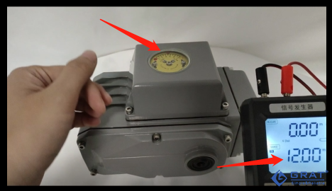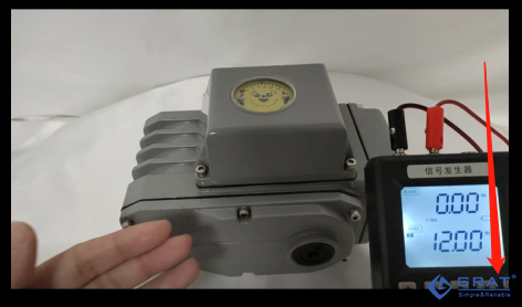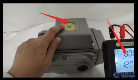 直到刻度盤(輸出軸)肉眼可見的行程變化(移動),記錄此時的信號值,記為I2