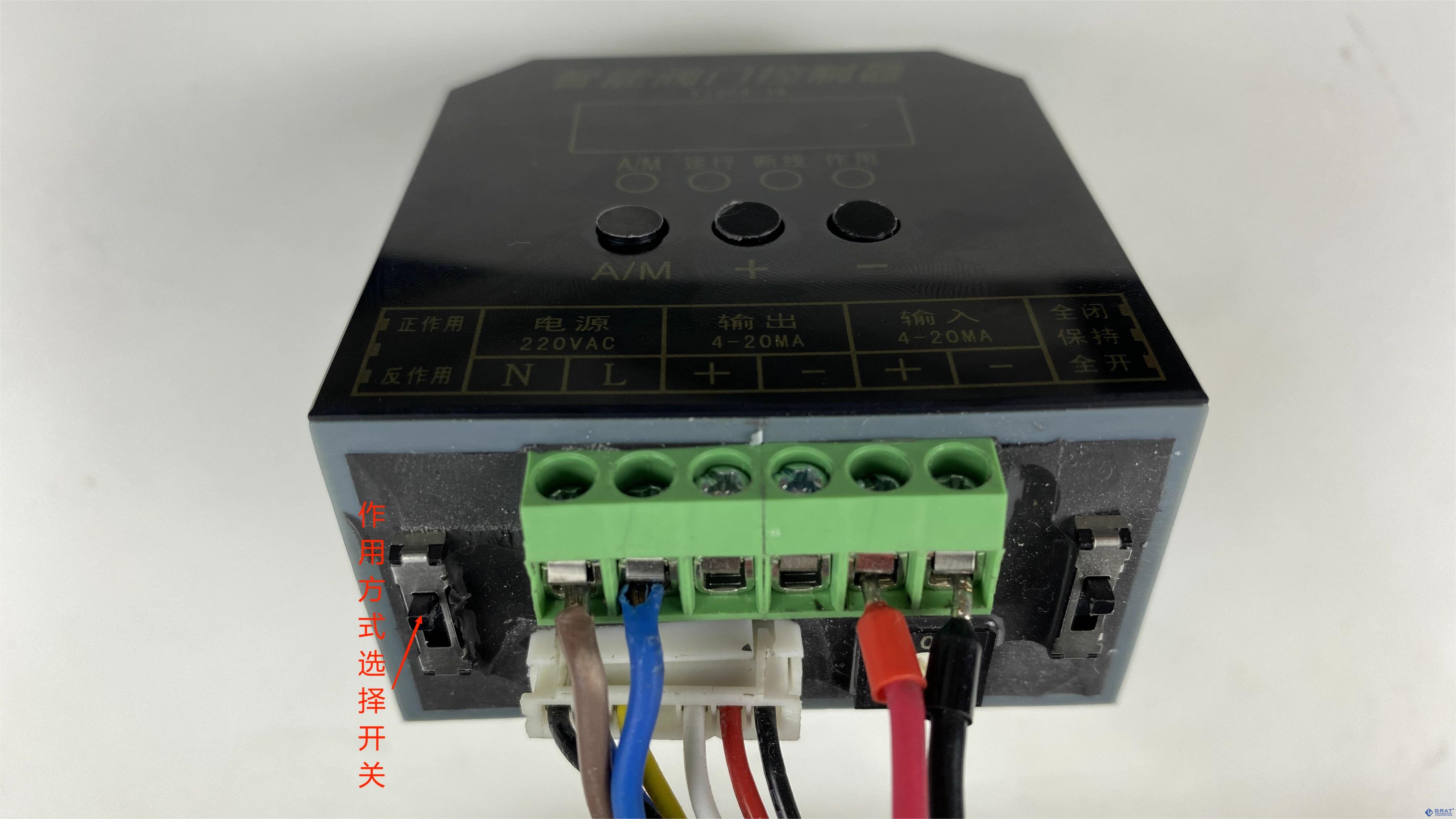5、置作用方式選擇開關(guān)為“正作用”,綠色指示燈亮,給20mA信號。