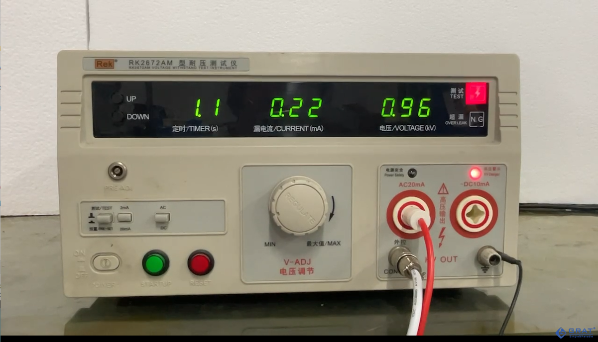 第五步、讀取耐壓測(cè)試儀的漏電流數(shù)值及是否發(fā)生報(bào)警提示音