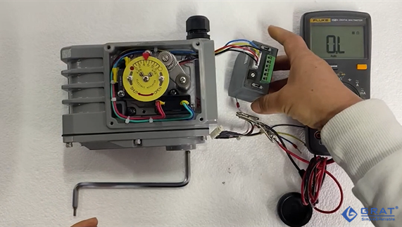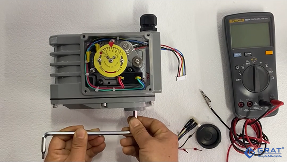 一、首先,我們打開執(zhí)行器上的電裝玻璃蓋和接線盒。把內(nèi)六角手柄插入蝸桿軸內(nèi),搖動蝸桿,使執(zhí)行器運行到刻度板指示“5”刻度位置。