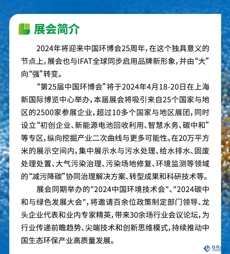 4月18日-20日,GRAT在上海第25屆中國(guó)環(huán)博會(huì)W4館G59展位等您!