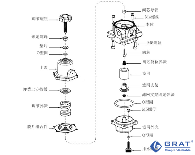 內(nèi)置5微米濾網(wǎng),可以過濾氣源中的微小顆粒,并且可以通過排水蓋排除凝集水。