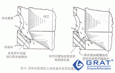 2)用流線型的流動(dòng)來防止在閥內(nèi)件上受顆粒的直接沖擊。要做到這一點(diǎn),流體必須平行于閥座接臺(tái)面和閥芯柱塞表面流動(dòng)。流向必須緩慢地改變,還必須應(yīng)用流體附著和脫離原理來保護(hù)閥芯和閥座接合面部分。這些因素由閥門設(shè)計(jì)人員來處理,但是用戶和制造廠的應(yīng)用工程師在選擇閥內(nèi)件型式和閥體式樣中起重要的作用,協(xié)助實(shí)現(xiàn)這些工作原理。