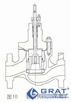 閥芯也可以制成有內(nèi)孔道的空心柱塞,使流體壓力能穿過閥芯,在靠近活塞頂端的槽中裝有~個滑動密封墊,在閥芯上部封住閥的出口。圖10表示的這種平衡結(jié)構(gòu)有助于抵消作用在閥芯上的流體靜壓力,導(dǎo)致所需的執(zhí)行機構(gòu)推力大為減小。但是,和雙座閥一樣,閥座的泄漏量有明顯的增加。