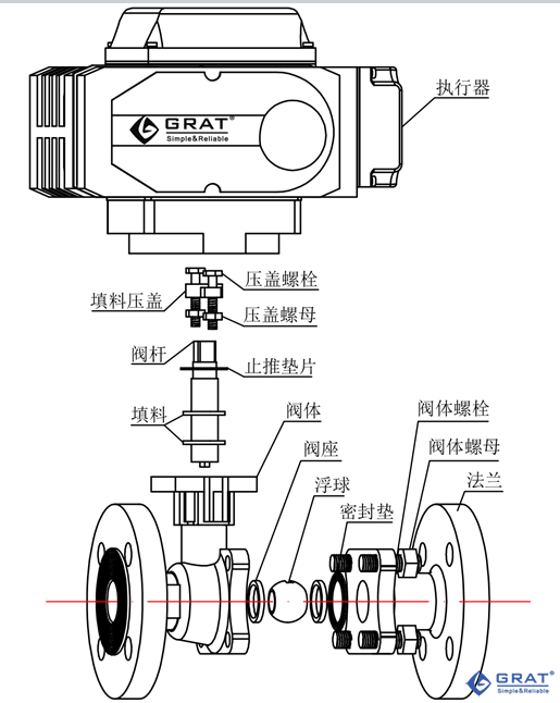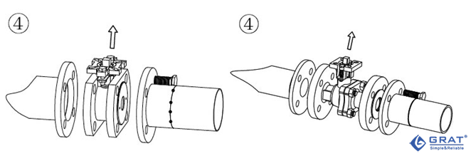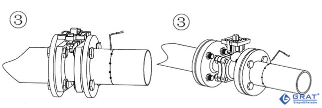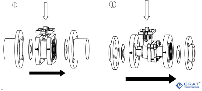 2.2.1將閥門放置于安裝的兩片法蘭之間,請務必按照介質流向安裝球閥;