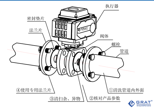 注:1、閥門前后管線應準備好,前后管道應同軸,兩法蘭密封面應平行。