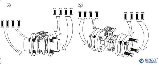 2.2.2 將螺栓輕輕插入法蘭孔,將螺母稍加擰緊以校正法蘭面的平面度;