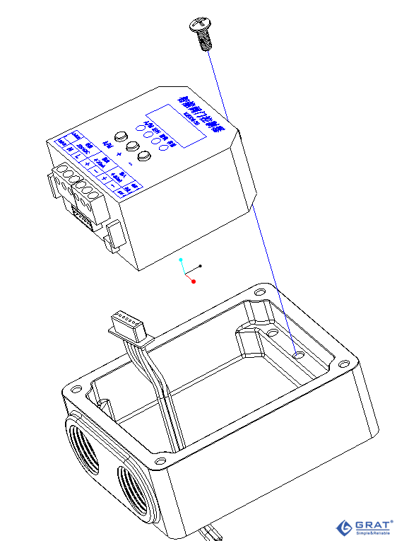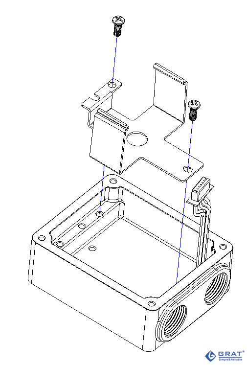 將鈑金卡扣件按正確方向放置于閥體型腔里,然后用十字螺絲刀(或電動起子)鎖緊鈑金卡扣件