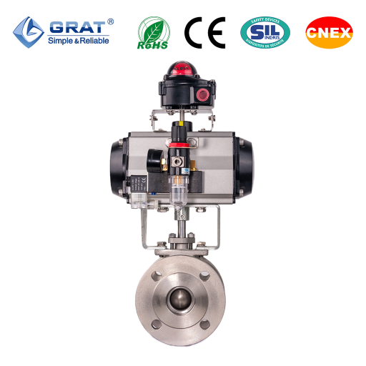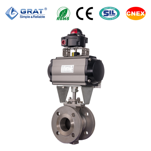 氣動V型調(diào)節(jié)閥具有卓越的調(diào)節(jié)性能特別適用于(礦漿、紙漿)高溫蒸汽調(diào)節(jié)等各種工業(yè)領(lǐng)域的高精度調(diào)節(jié)環(huán)節(jié)。實(shí)現(xiàn)管道中介質(zhì)流量調(diào)節(jié)。
