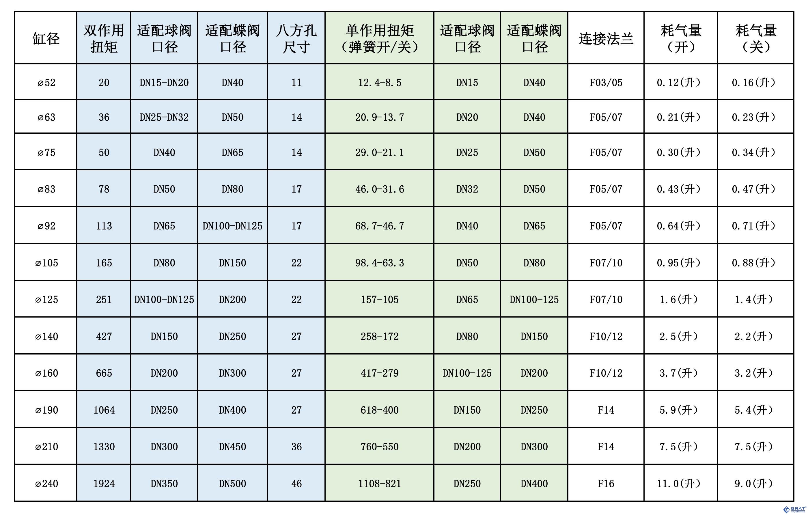 氣動執(zhí)行器適配閥體參數(shù)對照表