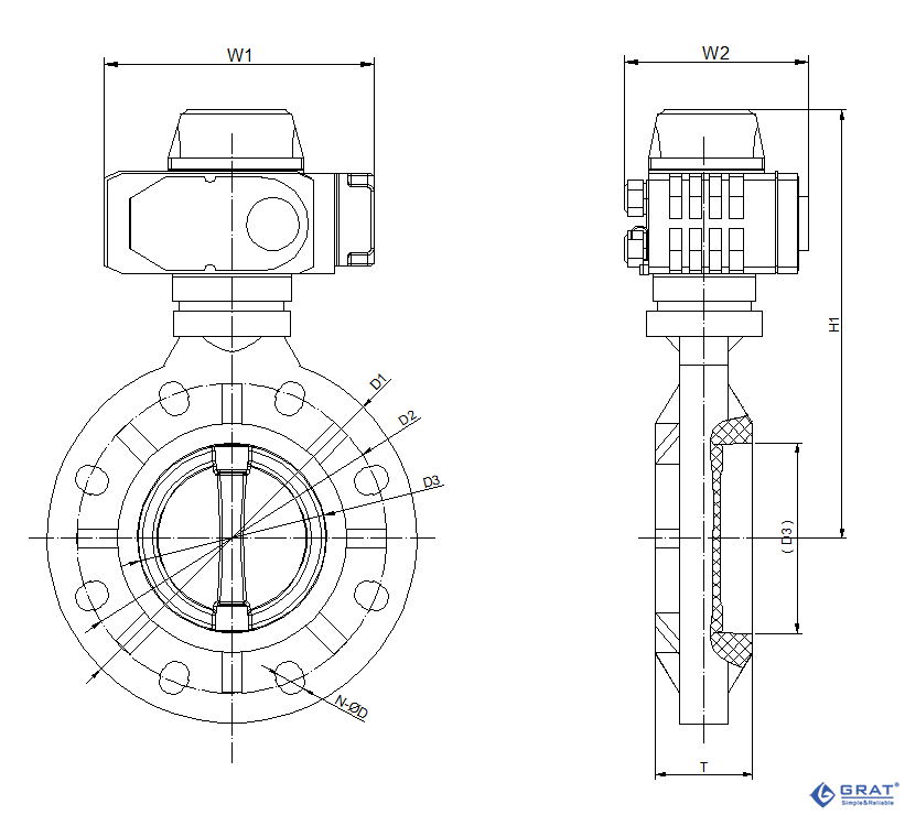 | DN | D1 | D2 | D3 | T | N-ΦD | W1 | W2 | H1 |