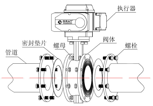 2、法蘭式電動蝶閥與管道連接示意圖