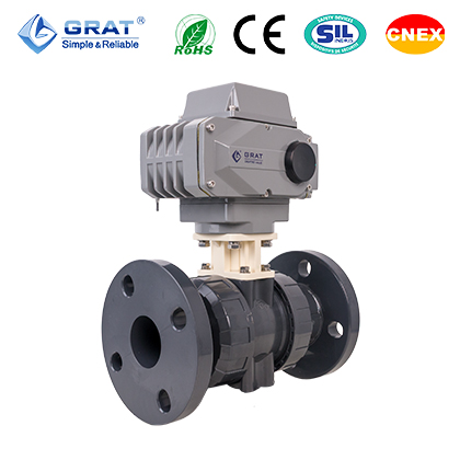 UPVC電動球閥采用具有極強耐腐蝕性能的UPVC材料,能耐強酸、強堿,不會生銹結(jié)垢。使得其用途更加廣泛。雙由令連接方式,拆卸簡單方便,維護簡單易行(如下圖)。