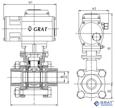 1.精小型電動(dòng)球閥外形和連接尺寸: