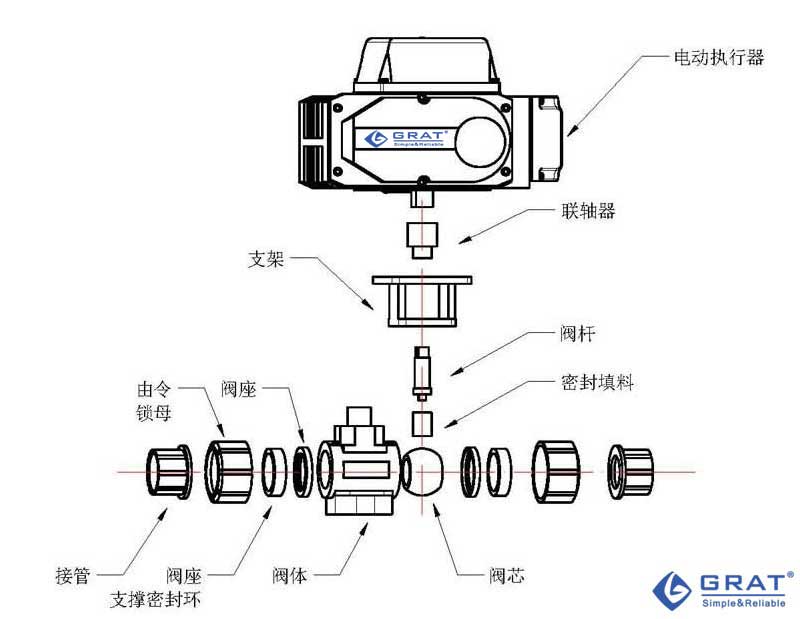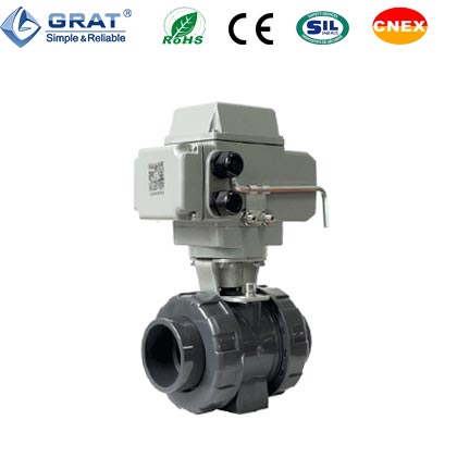 1、UPVC電動(dòng)球閥采用具有極強(qiáng)耐腐蝕性能的UPVC材料,能耐強(qiáng)酸、強(qiáng)堿,不會(huì)生銹結(jié)垢。使得其用途更加廣泛。雙由令連接方式,拆卸簡單方便,維護(hù)簡單易行(如下圖)。
