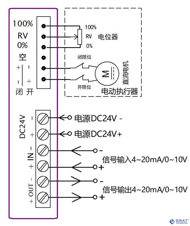 | 通過外部直流電源向電路輸出模擬量信號控制開啟,關閉程序,并輸出一組對應全開,全閉位置的模擬量信號。 | PCU-DC24 | ![]() | |