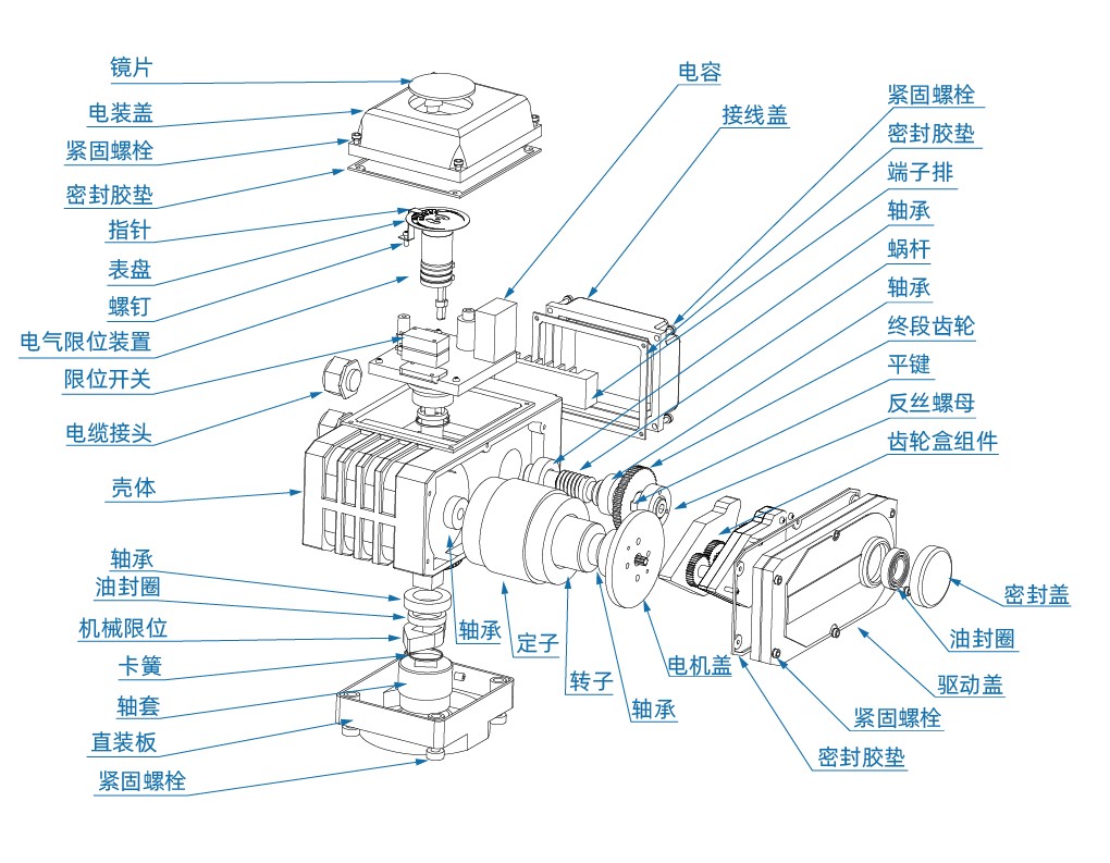 6、執(zhí)行器密封標準為執(zhí)行器整體浸入水中,無氣泡泄漏。適合戶外露天工況。