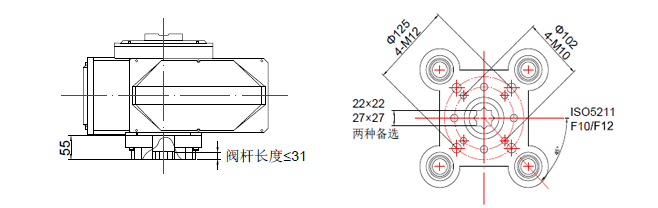 部分回轉(zhuǎn)防爆電動(dòng)執(zhí)行器安裝尺寸圖: