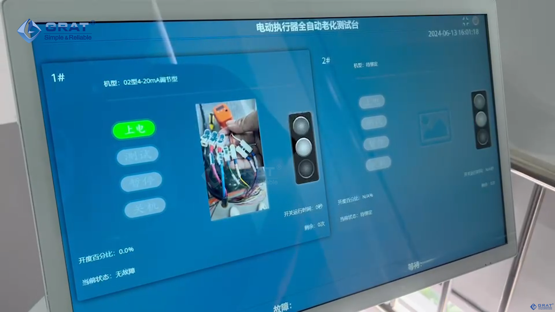 每臺電動執(zhí)行器出廠前都會進(jìn)行老化測試,以確保產(chǎn)品的長期穩(wěn)定性,根據(jù)JB/T8219標(biāo)準(zhǔn),需在 20℃(參比)、60℃、-20℃、20℃四個溫度上進(jìn)行試驗,每一溫度點上應(yīng)保持2小時。